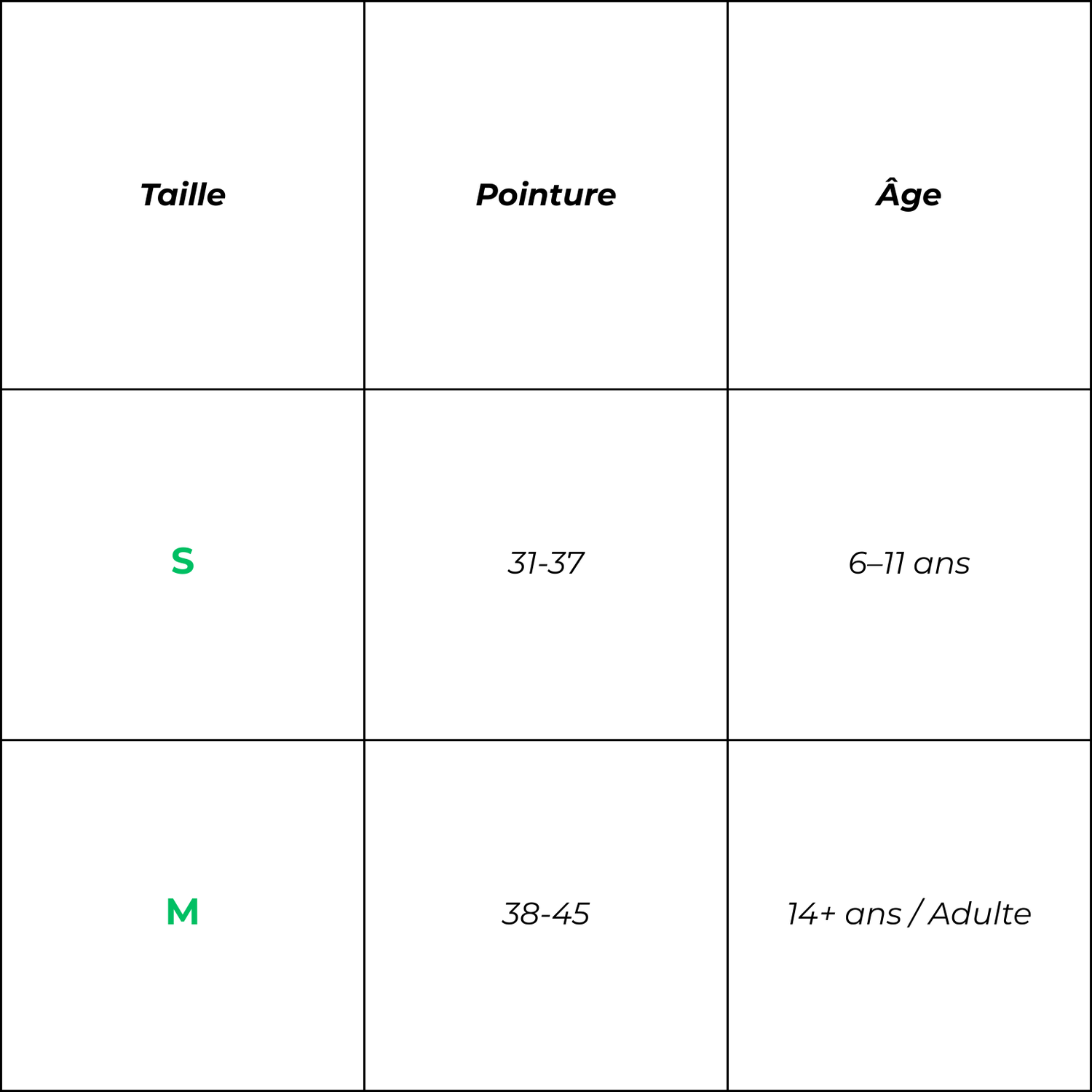 Veuillez vous référer à notre guide des tailles disponible sur la page produit. En cas de doute entre deux tailles, choisissez la plus grande pour plus de confort. Prenez votre pointure habituelle.